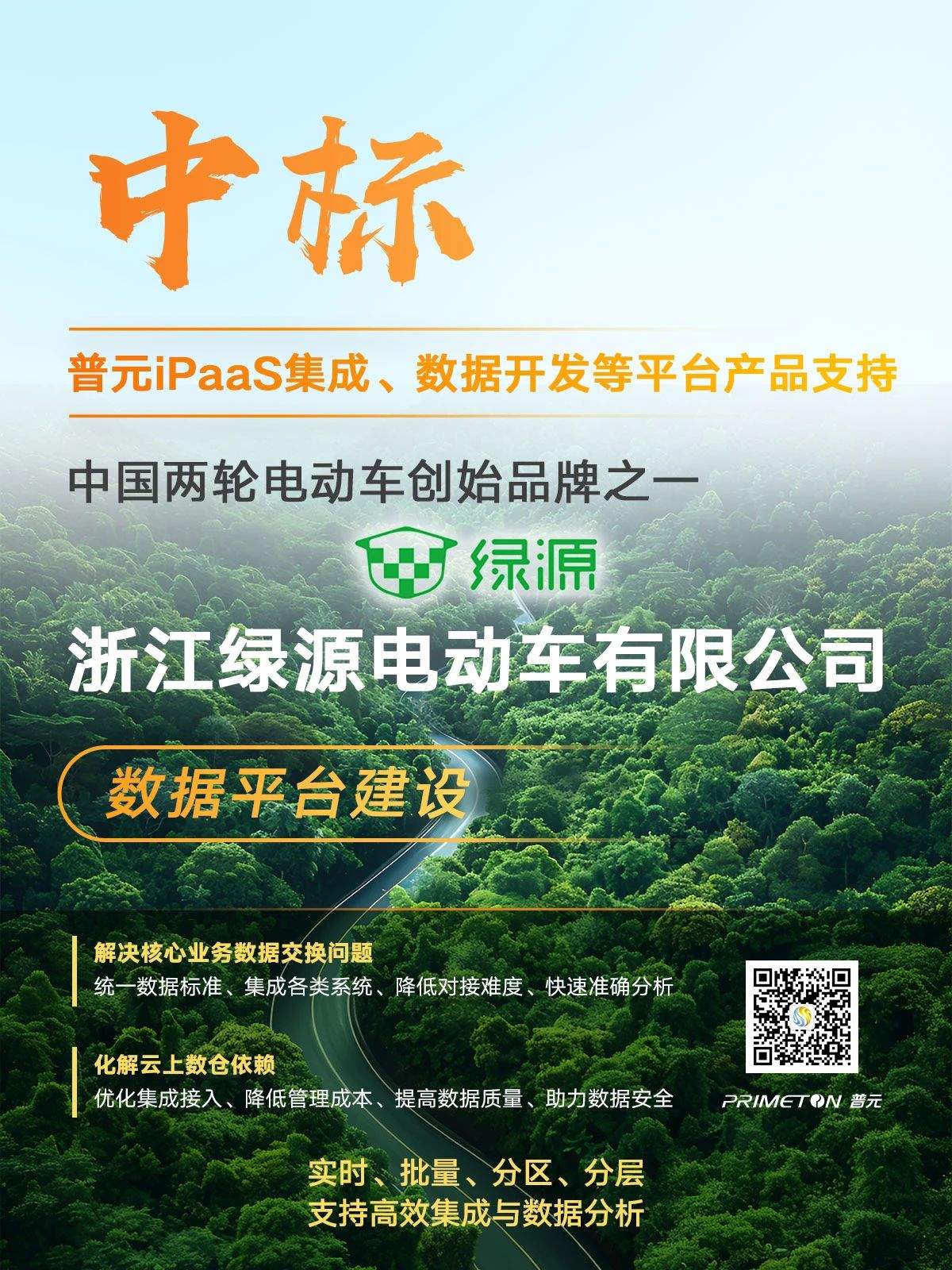 中标!普元iPaaS集成等平台产品支持绿源数据平台建设
