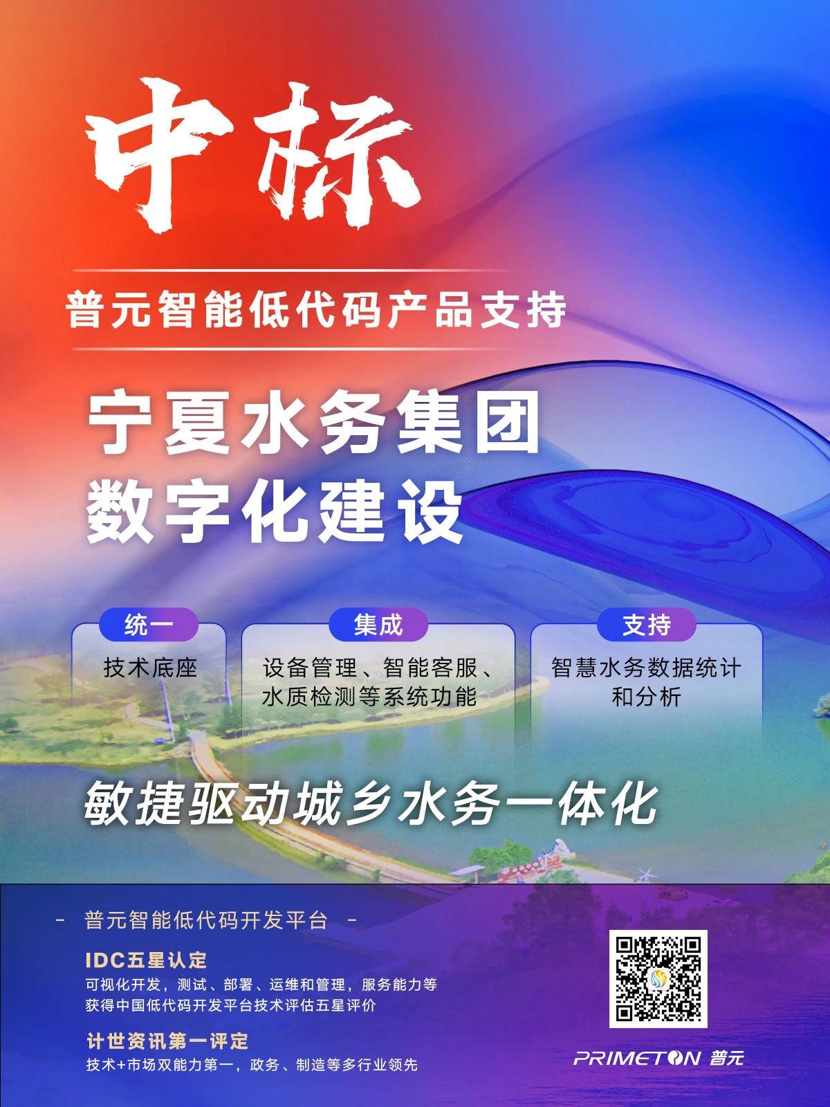 中标!普元智能低代码产品支持宁夏水务集团数字化建设