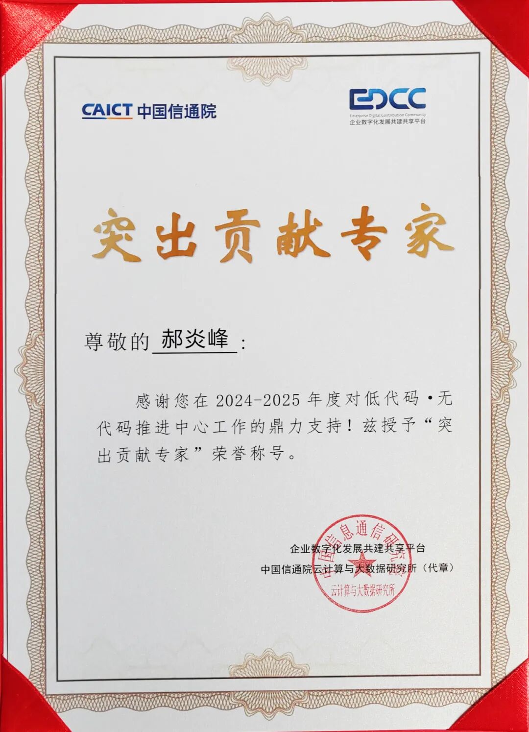 普元郝炎峰获评2025年度EDCC低代码·无代码推进中心突出贡献专家