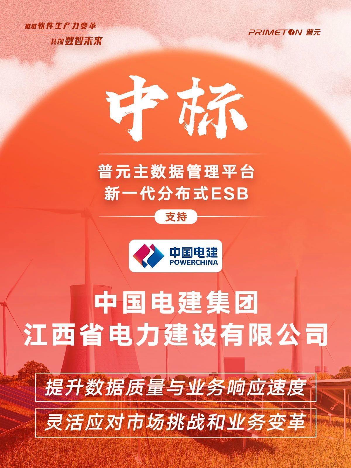 中标!普元主数据、ESB产品支持中国电建江西电建公司提质增速