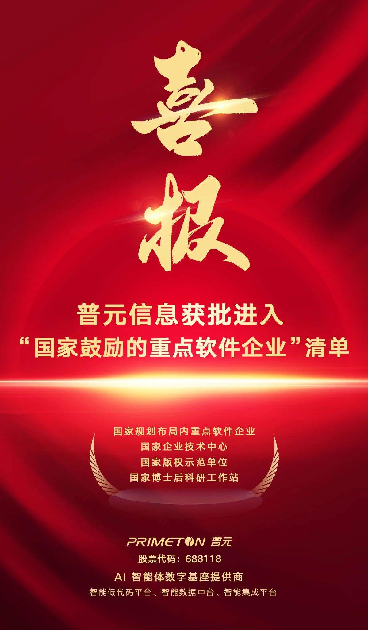 喜报!普元信息获批进入“国家鼓励的重点软件企业”清单