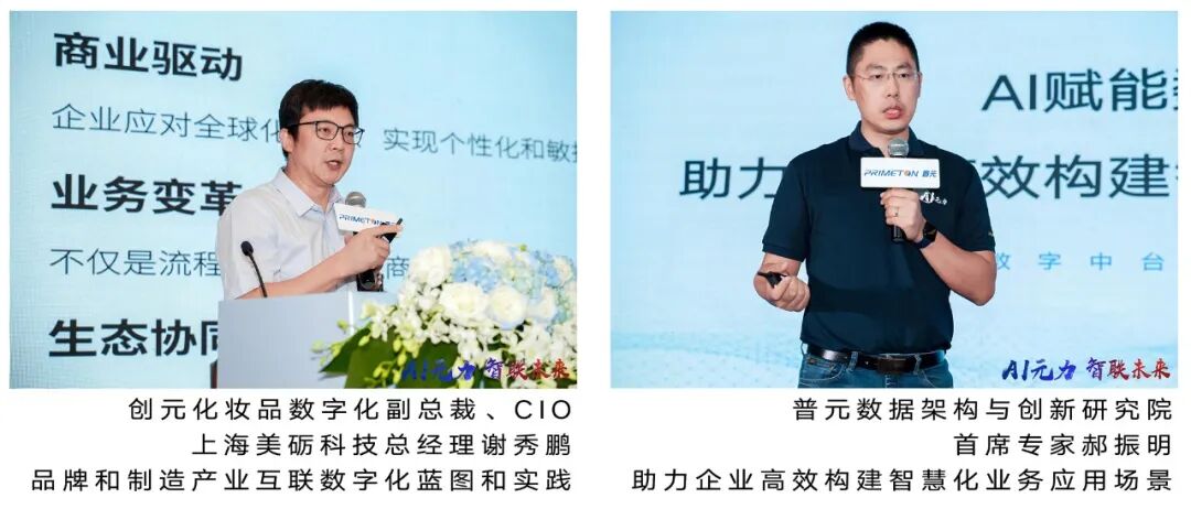 创元化妆品数字化副总裁、CIO,上海美砺科技总经理谢秀鹏,结合产业互联数字化蓝图,逐步剖析了由普元新一代分布式ESB等智能集成产品支撑的全场景升级实践,通过一致性演化促进集团产业互联,进而在新的AI时代实现持续创新。普元数据架构与创新研究院首席专家郝振明,则从企业应用变革的角度,解析公司智能数字基座产品体系助力企业高效构建智慧化业务应用场景的众多实践。