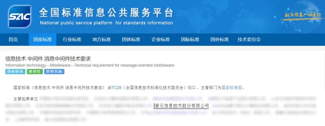 近日,国家市场监督管理总局、国家标准化管理委员会正式发布了GB/T 26232-2025《信息技术 中间件 应用服务器中间件技术要求》与GB/T 28168-2025《信息技术 中间件 消息中间件技术要求》两项国家标准。普元信息(股票代码:688118)依托全栈中间件领域的深厚积累与AI中间件场景的先发优势,以及支持企业数字化、智能化转型背景下的分布式架构改造、信创平滑迁移、AI应用融合等丰富经验,成功完成两项中间件国家标准的编制任务,为中间件行业的自主可控与有序发展提供坚实的标准化保障: