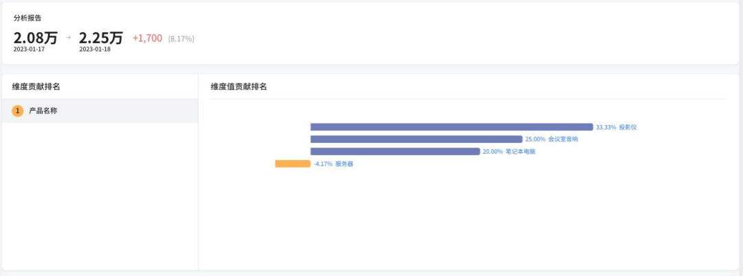 归因分析场景的价值在于从“知其然”发展到“知其所以然”,为企业提供诊断问题、驱动改进的工具。当关键指标出现异常波动时(如销售额骤降或成本飙升),平台不再仅仅呈现数据,而是借助预先构建的企业知识图谱与智能算法,结合毛刺图等可视化手段,自动下钻,追溯分析,智能识别并量化影响因素——是特定区域的营销活动效果不佳,还是供应链某环节出现瓶颈,抑或是竞争对手策略调整所致。这种穿透式、可解释的归因能力,使得管理者能够更清晰地了解问题的可能原因,避免盲目决策,从而制定出有效的应对措施,实现数据驱动的业务优化与风险规避,其应用价值超出了简单的报表呈现。