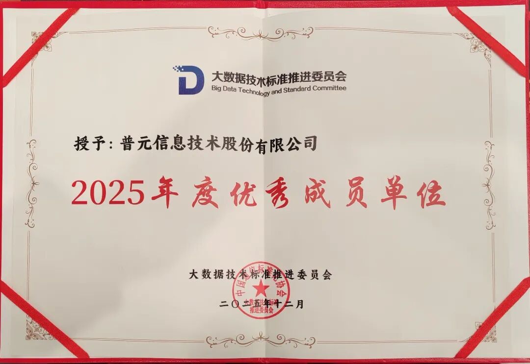 普元获得大数据技术标准推进委员会“2025年度优秀成员单位”荣誉